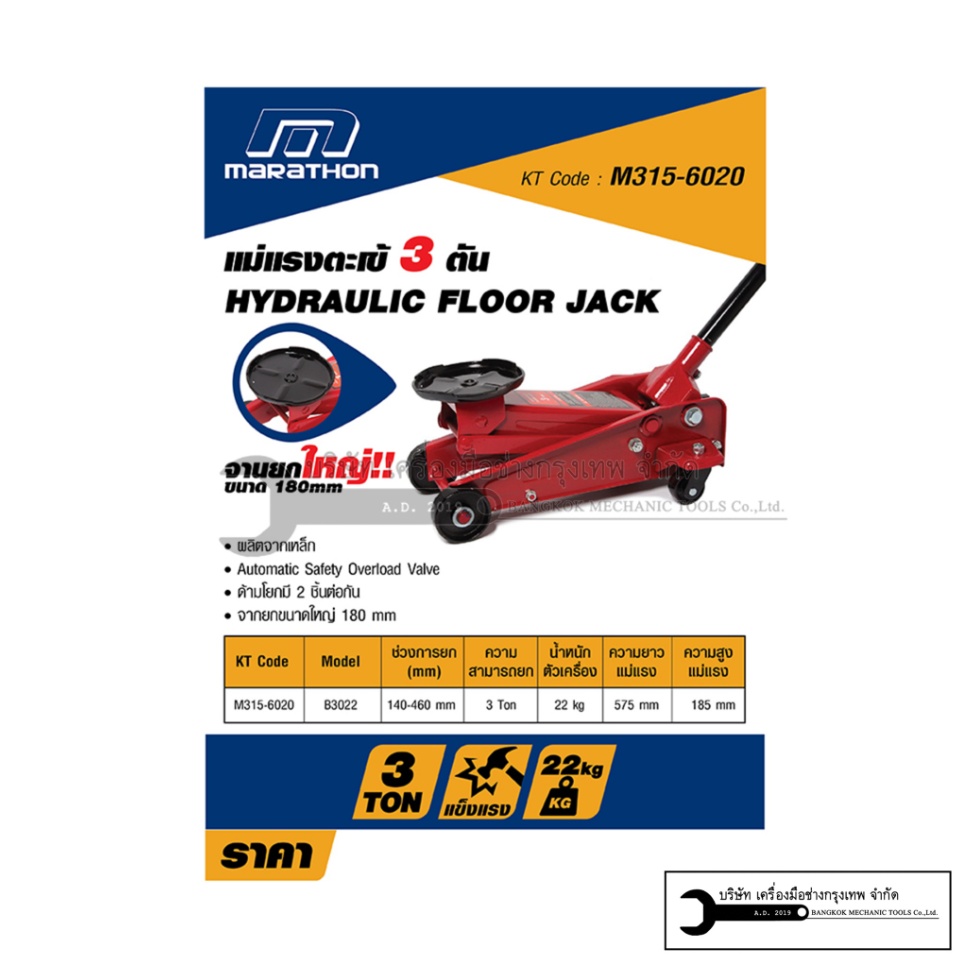 แม่แรงตะเข้ "มาราธอน" HYDRAULIC FLOOR JACK