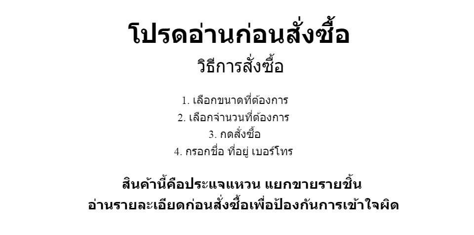 หมายเหตุ : สินค้าชิ้นนี้เเยกขาย ไม่ได้ขายทั้งชุด ลูกค้าเลือกขนาดที่ต้องการก่อนยินยันคำสั่งซื้