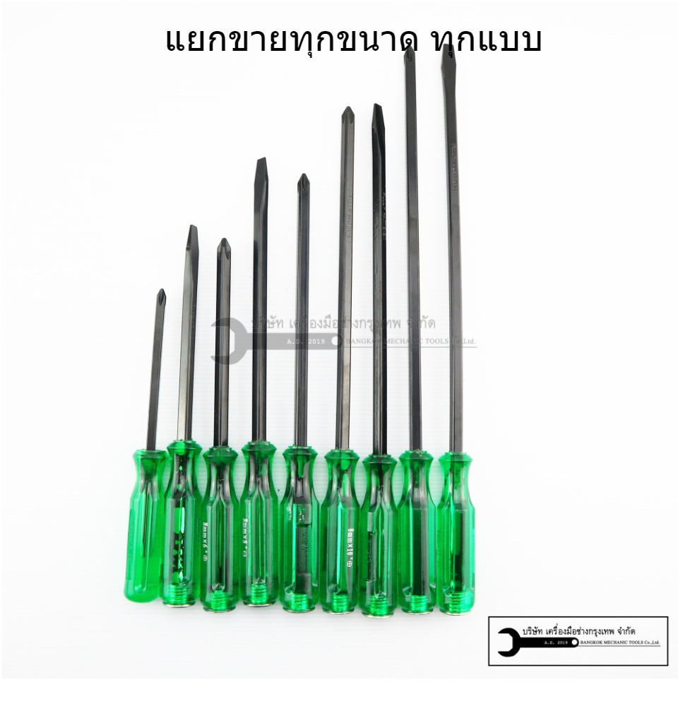 มีตั้งเเต่ขนาด 4นิ้ว 5นิ้ว 6นิ้ว 8นิ้ว 10นิ้ว 12นิ้วและไขควงสลับ