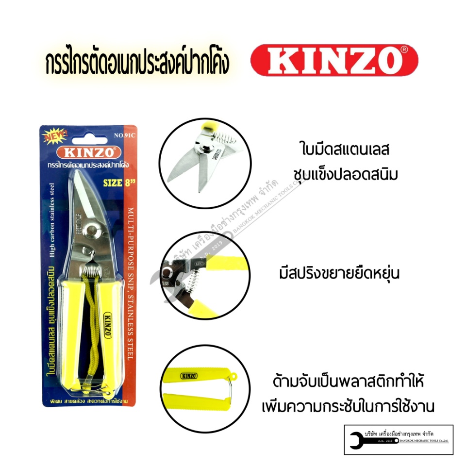 กรรไกรตัดอเนกประสงค์ปากโค้ง (ตัดแผ่นเหล็ก ตะปู สังกะสี กิ่งไม้ พลาสติกแข็ง) Kinzo