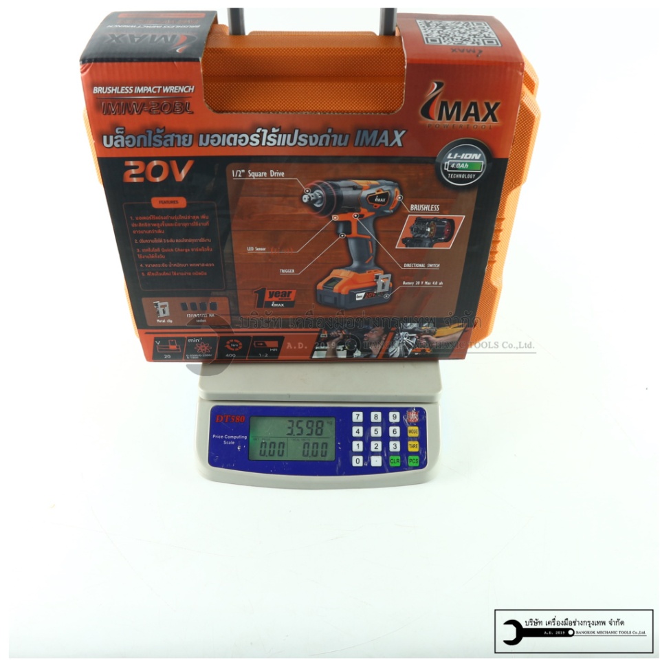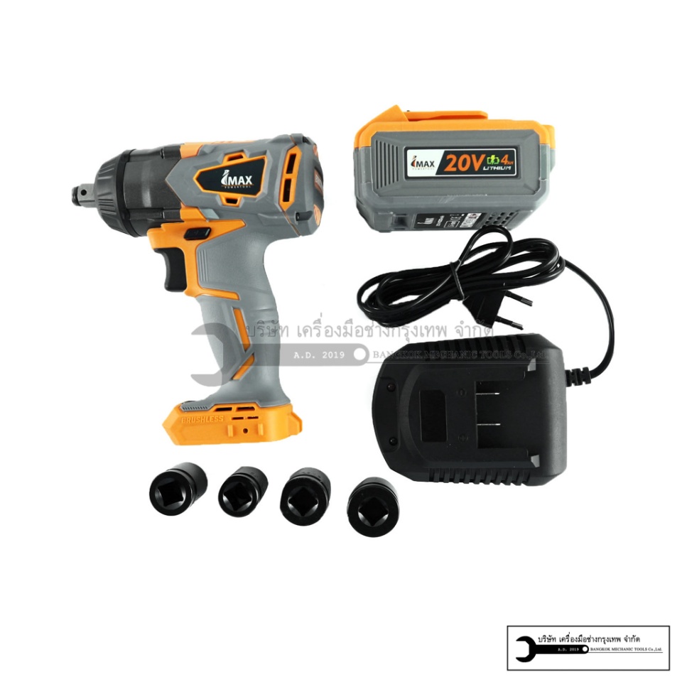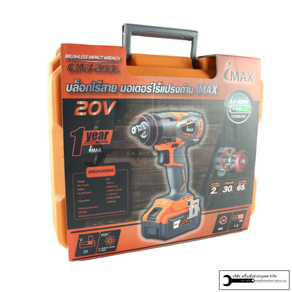 IMAX บล็อกไร้สายมอเตอร์ไร้แปลงถ่าน 20v 4Ah แรงบิด 400N.m รุ่น IMIW-20BL