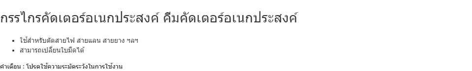 ใช้สำหรับตัดสายไฟ สายแลน สายยาง ฯลฯ