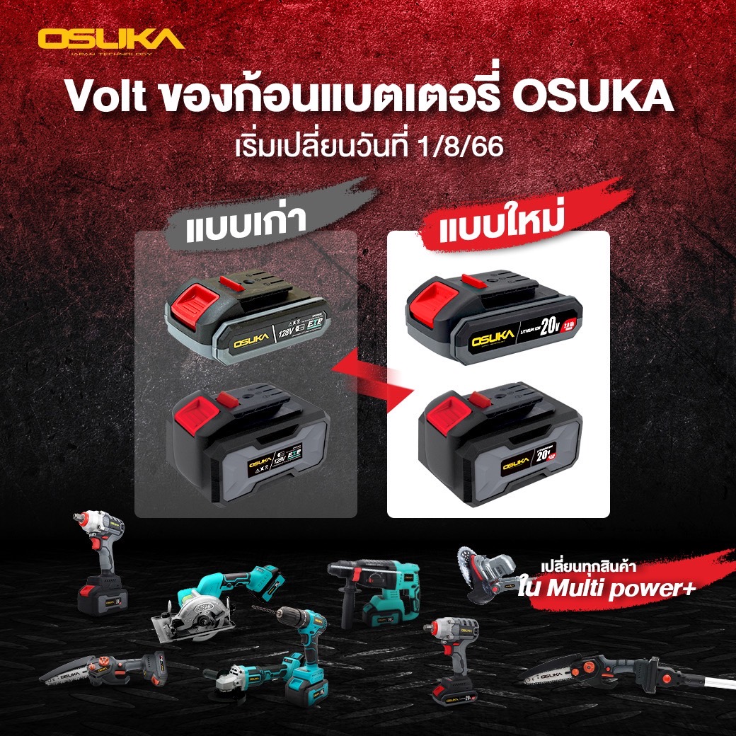 ของแท้100% แบตเตอรี่ บล็แบตเตอรี่ OSUKA 20V ขนาด 2.0 Ah / 4.0 Ah สำหรับ บล็อกไฟฟ้า เครื่องเจียร เครื่องตัดกิ่งไม้ เครื่องตัดหญ้า Osuka ของแท้100%