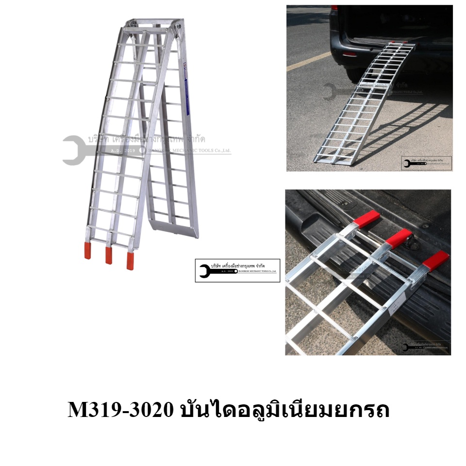 บันไดทำจากวัสดุอลูมิเนียม น้ำหนักเบา ใช้เคลื่อนย้ายรถมอเตอร์ไซค์ ขึ้นรถกระบะ หรือขึ้นที่สูงต่างระดับ