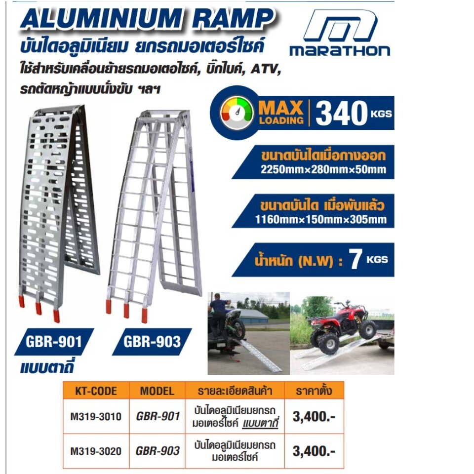 GBR-903 บันไดอลูมิเนียม สำหรับเคลื่อนย้ายรถ ยกรถ มอเตอร์ไซค์ มินิไบค์-บิ๊กไบค์, รถตัดหญ้าแบบนั่งขับ และ ATV