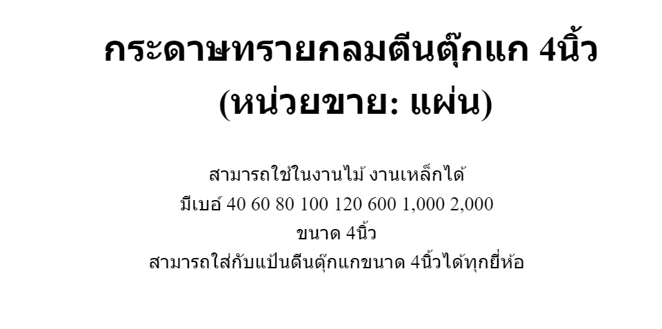 กระดาษทรายกลมตีนตุ๊กแก 4นิ้ว (หน่วยขาย: แผ่น) สามารถใช้ในงานไม้ งานเหล็กได้ มีเบอ์ 40 60 80 100 120 600 1,000 2,000 ขนาด 4นิ้ว สามารถใส่กับแป้นตีนตุ๊กแกขนาด 4นิ้วได้ทุกยี่ห้อ