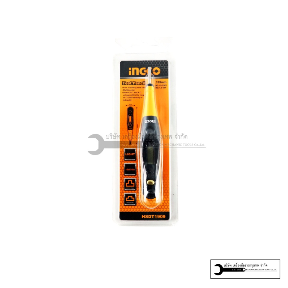 INGCO ไขควงเช็คไฟระบบดิจิตอล รุ่น HSDT1909 INGCO ไขควงปากแบน หน้าจอแสดงตัวเลขกระแสไฟฟ้าและหลอด LED สินค้าใหม่ 100% ช่วงการทดสอบ AC 12-250V / DC 1.5-36V ด้ามจับพลาสติก ABS เกรด A อย่างดี
