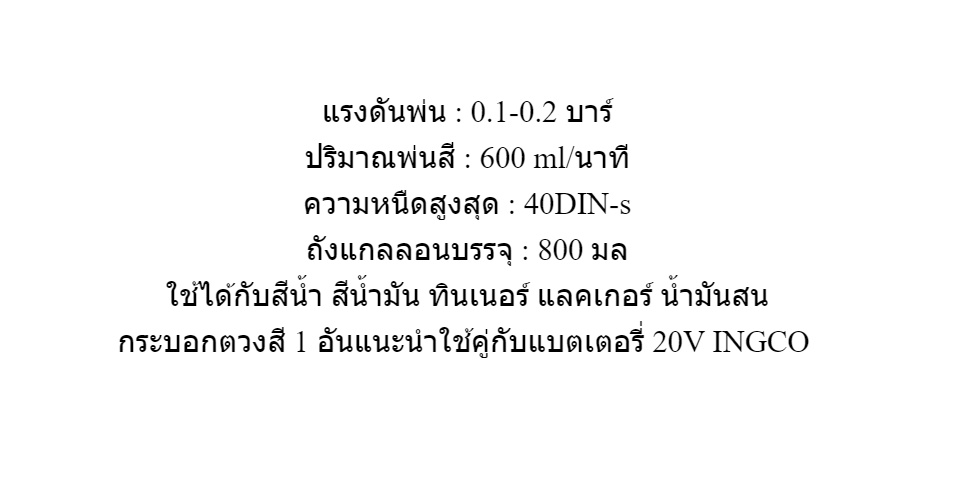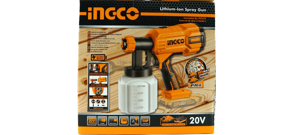 INGCO เครื่องพ่นสี เครื่องพ่นสี แบตเตอรี่ไร้สาย 20 โวลท์ รุ่น CSGLI2001