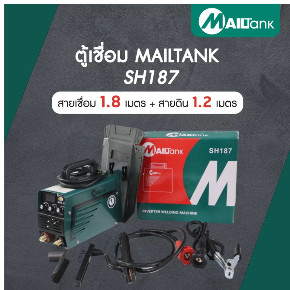 MAILTANK ตู้เชื่อมINVERTER IGBT MMA-600 ตู้เชื่อมไฟฟ้า เครื่องเชื่อมพร้อมสายเชื่อม รุ่น SH-187 เชื่อมได้นาน ไม่ตัด เชื่อมนิ่ม ใช้งานง่ายมาก แข็งแรง ทนทาน น้ำหนักเบา เป็นระบบ Inverter ความถี่ 50-60 Hz. น้ำหนัก 2.6 กิโลกรัม ขนาด 30 x 13.5 x 26 cm แถมฟรี !!! - สายเชื่อม 1.2 *1.8 m. - แปรงขัด - หน้ากากเชื่อม - สายสะพาย