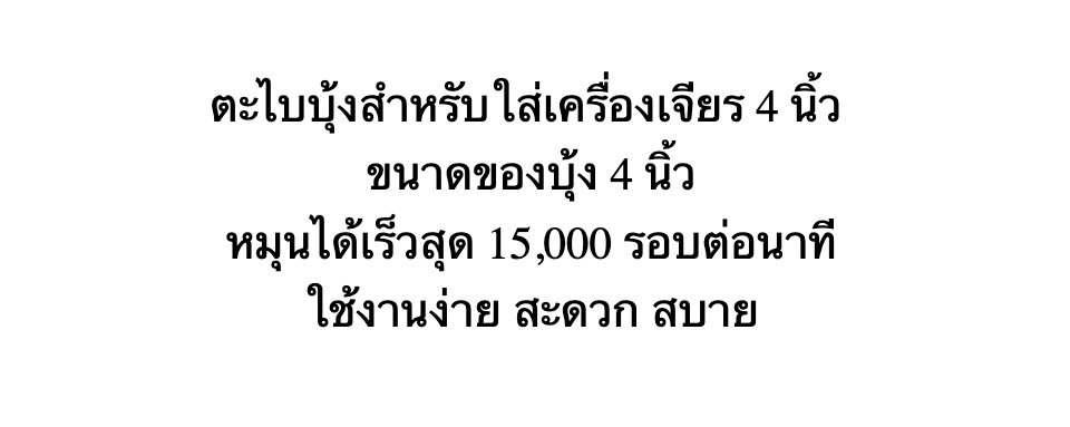 ตะไบบุ้งสำหรับใส่เครื่องเจียร 4 นิ้ว ขนาดของบุ้ง 4 นิ้ว หมุนได้เร็วสุด 15,000 รอบต่อนาที ใช้งานง่าย สะดวก สบาย
