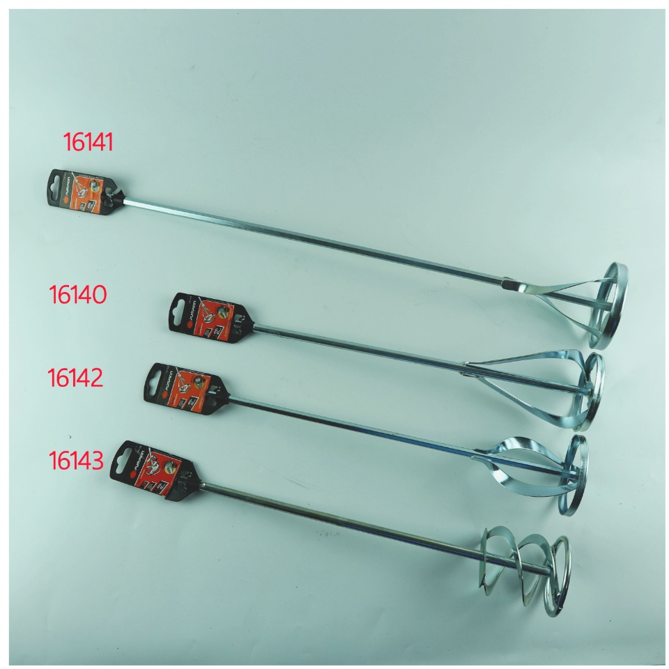 PUMPKIN ดอกปั่นผสมสี/ปูน ที่กวนปูน ที่ผสมสี16140/16141 ใช้กับสว่านทั่วไป 10mm16142/16143 ใช้กับสว่านโรตารี่ SDS-PLUS ทำจากวัสดุเหล็กกล้า แข็งแรง หนาชุบด้วยโครม (Chrome plated) ทำให้ป้องกันการกัดกร่อนได้ดีกว่าแบบพ่นสีทั้งยังทำความสะอาดได้ง่ายกว่า ทนทานกว่าระบบเชื่อมด้วยเครื่องอัตโนมัติ ทำให้รอยต่อไม่หลุดออกสามารถผสมในปริมาณวัสดุตั้งแต่ 1-5 แกลลอน (gallon)16140 ดอกปั่นผสมสี/ปูน ก้านหกเหลี่ยม หัวปั่น1ชั้น ยาว 400mm 16141 ดอกปั่นผสมสี/ปูน ก้านหกเหลี่ยม หัวปั่น1ชั้น ยาว600mm 16142 ดอกปั่นผสมสี/ปูน ก้านโรตารี่ หัวปั่น1ชั้น ยาว 400mm 16143 ดอกปั่นผสมสี/ปูน ก้านโรตารี่ หัวปั่น2ชั้น ยาว 400mm