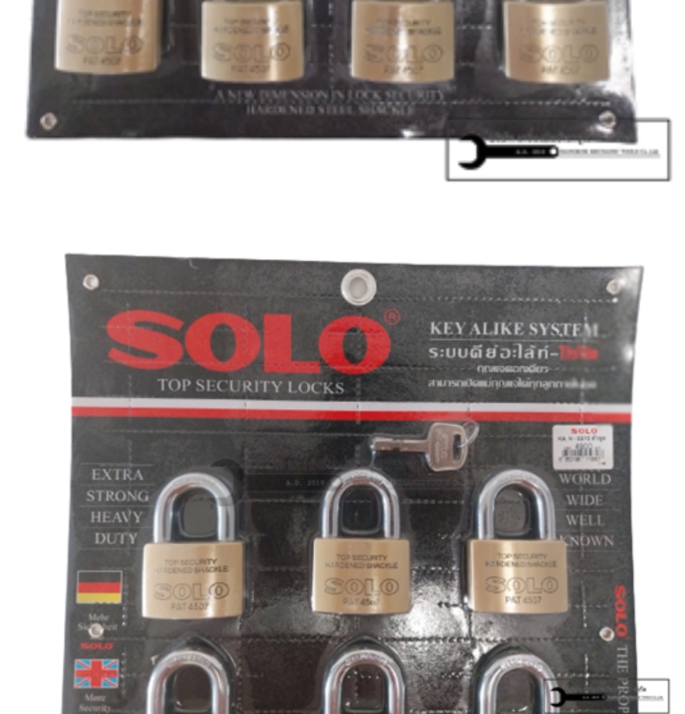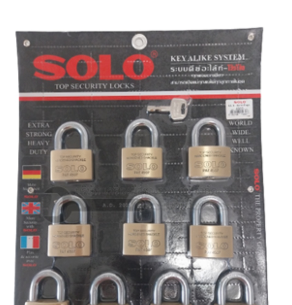 SOLO กุญแจคีย์อะไล้ ระบบลูกปืน ทำจากทองเหลืองแท้ ( คอสั้น-50MM 10 ตัวชุด )คุณสมบัติประกอบด้วยแผ่นแหวน ป้องกันกุญแจผีหูกุญแจ เหล็กชุบแข็ง ป้องกันการเลื่อยระบบล็อค ลูกปืน 2 ข้าง สุดยอดปลอดภัย ตัวแม่กุญแจ ทองเหลืองแท้ ไม่เป็นสนิม สามารถล็อกในน้ำได้ ดอกกุญแจสี่เหลี่ยม เปิดได้ 2ข้าง สะดวก ปกป้อง พิทักษ์ทรัพย์สิน เช่น บ้าน รถ ฯลฯ ผลิตที่ประเทศไทย