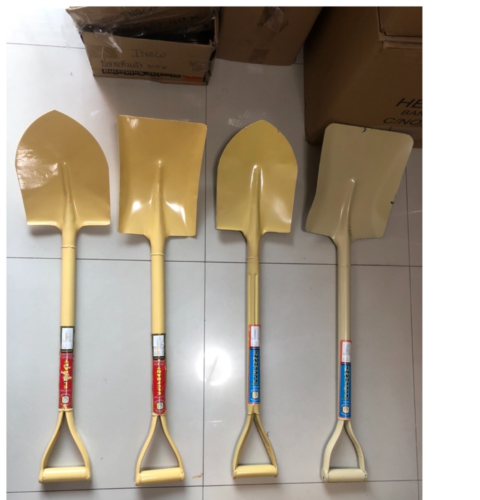 พลั่ว ตราช้างคู่ ผลิตจากวัสดุที่มีคุณภาพ มีความแข็งแรง ทนทาน เหมาะสำหรับงานก่อสร้าง ใช้ในการตักดิน หิน ทราย ใช้งานได้ง่ายและสะดวกต่อการเคลื่อนย้าย ขนาด ความยาว 38 นิ้ว หัวด้ามกว้าง 9 นิ้ว มี 4แบบ 1. ปลายแหลม + หนา น้ำหนัก 1.64กิโลกรัม 2.ปลายตัด +หนา น้ำหนัก 1.78กิโลกรัม 3.ปลายแหลม + บาง น้ำหนัก 1.24กิโลกรัม 4.ปลายตัด + บาง น้ำหนัก 1.43กิโลกรัม