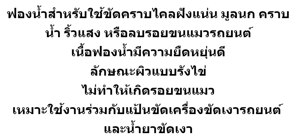 ฟองน้ำสำหรับใช้ขัดคราบไคลฝังแน่น มูลนก คราบน้ำ ริ้วแสง หรือลบรอยขนแมวรถยนต์ เนื้อฟองน้ำมีความยืดหยุ่นดี ลักษณะผิวแบบรังไข่ ไม่ทำให้เกิดรอยขนแมว เหมาะใช้งานร่วมกับแป้นขัดเครื่องขัดเงารถยนต์ และน้ำยาขัดเงา