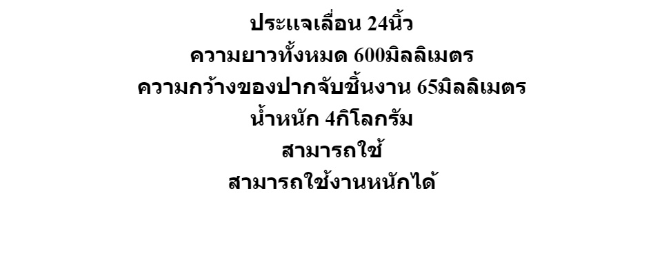 ประเเจเลื่อน 24นิ้ว ความยาวทั้งหมด 600มิลลิเมตร ความกว้างของปากจับชิ้นงาน 65มิลลิเมตร น้ำหนัก 4กิโลกรัม สามารถใช้ สามารถใช้งานหนักได้