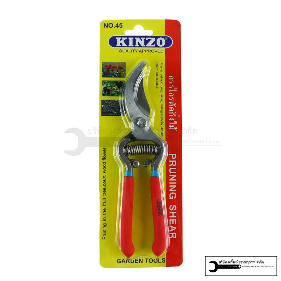 กรรไกรตัดกิ่ง KINZO No.45 ปากโค้ง กรรไกรตัดกิ่ง ใช้สำหรับตัดแต่งเล็มกิ่งไม้ ตัดกิ่งไม้ขนาดไม่เกิน 20 มิลลิเมตร ด้ามจับหุ้มยาง นุ่ม จับกระชับมือ ไม่ลื่นหลุด ความยาวกรรไกร 8 นื้ว น้ำหนัก 310 กรัม