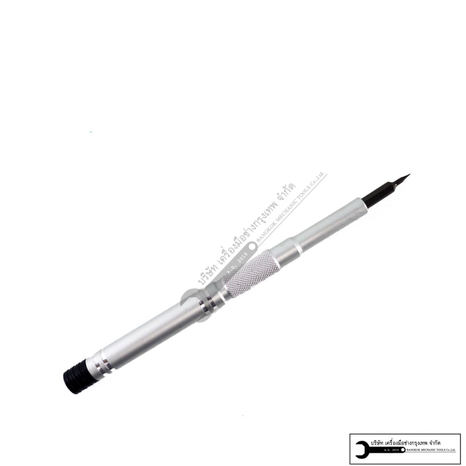 วัสดุตัวด้ามไขควง : อลูมิเนียมอัลลอย ด้ามไขควง ส่วนหัวแบบหมุนได้ และช่องใส่หัวสกรูแบบแม่เหล็ก ที่ทำให้ปลอดภัยต่อการใช้งาน