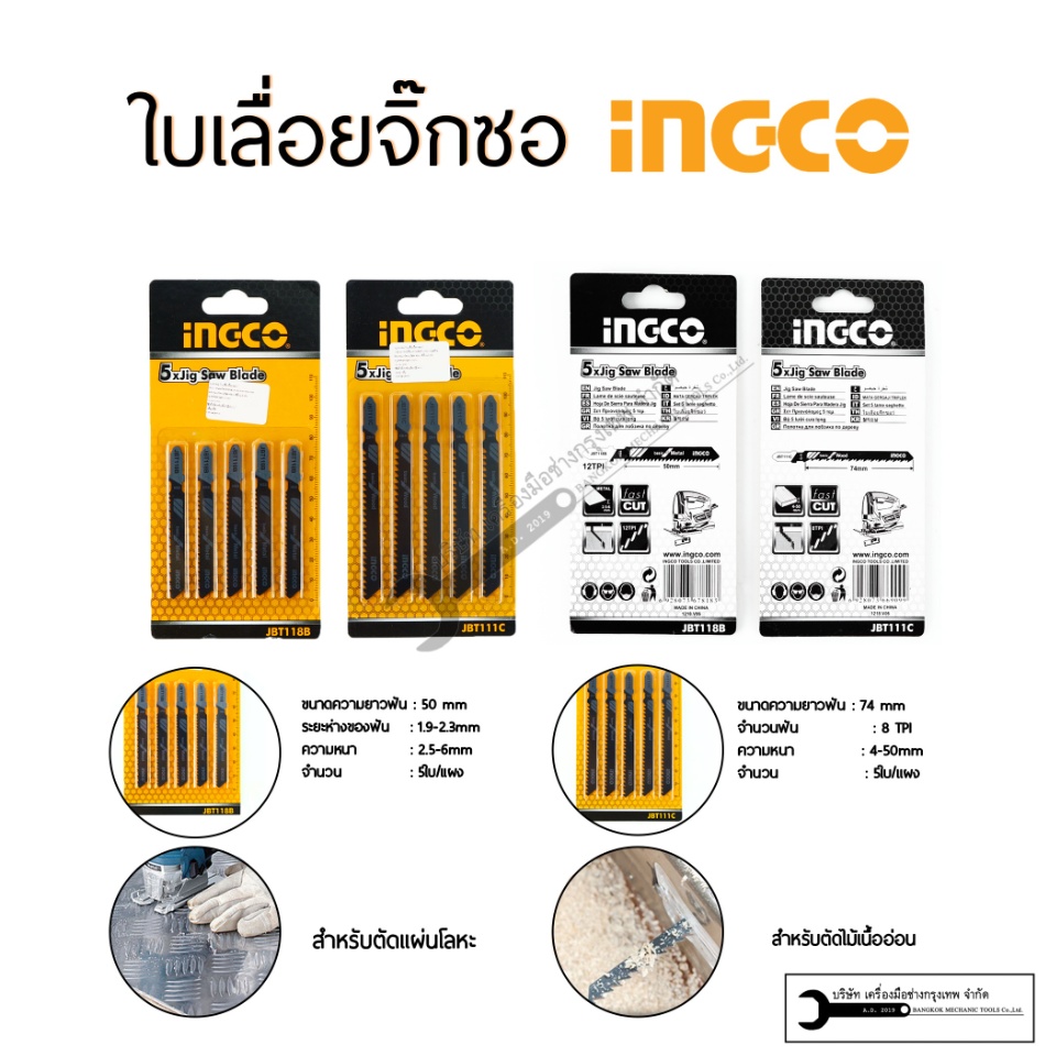 INGCO ใบเลื่อยจิ๊กซอ ตัดเหล็ด/ตัดไม้ 5ใบ/ชุด รุ่น JBT118BและJB111C