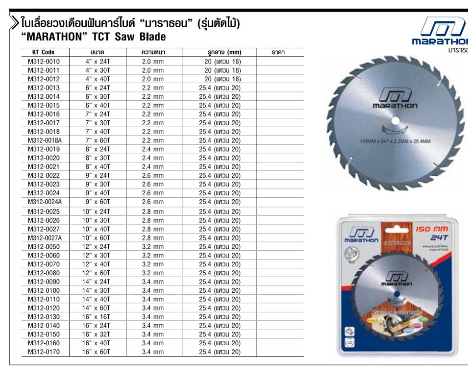 MARATHON ใบตัดไม้ฟันคาร์ไบค์ 14นิ้ว(355mm) ใบเลื่อยวงเดือน 14นิ้ว (24ฟัน 30ฟัน 40ฟัน 60ฟัน)