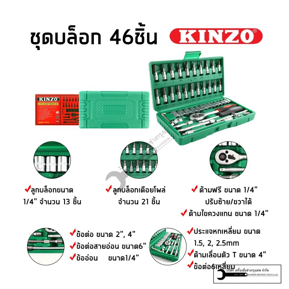 ประแจชุดบล็อก 46 ชิ้น คินโซ่ No.1546-46“ ชุดบล็อก 2 หุน ขนาด 1/4 นิ้ว ที่มาพร้อมอุปกรณ์ครบครันถึง 46 ชิ้น