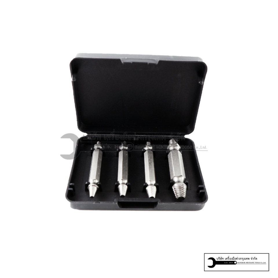 ชุดอุปกรณ์มี 4 หัวดอกให้เลือกใช้ตามขนาดของน็อตที่ต้องการจะถอน
